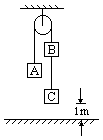 如图中,A、B、C三个物体的质量分别为1kg、0.6kg、0.9kg,开始运动时C离地高度为1m,则当C着地时A的速度为______m/s,若A至滑轮以及B、C之间的绳子足够长,则A相对于起始位置能上升的最大高度为______m。