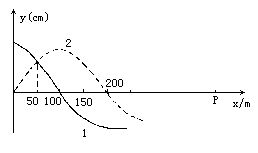 两列振幅、波长和波速都相同的简谐波1和2分别沿x轴的正方向和负方向传播,速度为v=200m/s,在t=0时刻的部分波形如图所示,那么在x轴上坐标为xP=450m的P质点,经最短时间t1出现位移最大值,经最短时间t2出现位移最小值,则t1、t2分别为________s、________s.