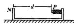质量为M的小盒停在光滑平面上,其右侧装有一个小的发射装置,发射口P到小盒左侧内壁的距离是d(图).现将质量为m的小弹丸装入发射器,击发后子弹几乎沿直线飞行击入左侧壁N的浅表不再掉出,则在这个过程中小盒在平面上移过的距离是_______.