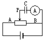 如下图,电源电动势ε=3V,内阻不计,AB为粗细均匀的电阻丝,电阻值是30Ω,长为30cm,电容C=5μF,当触头P以10m/s的速度向右匀速滑动时电流计中电流方向为________,电流计的读数是________.