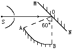 如图所示,S为一个频闪光源,每秒钟闪光30次,它发出的光通过一小圆孔后入射到平面镜MN的O点,圆弧形光屏AB的圆心恰为O,AB弧所对的圆心角为,今保持其他装置不动而将平面镜绕过O点且垂直纸面的轴转动,其角速度为ω=rad/s,试问在屏AB上最多可得多少个光点.
