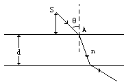 在折射率为n、厚度为d的玻璃平板上方的空气中有一点光源S,从S发出的光线SA以角度θ入射到玻璃板上表面,经过玻璃板后从下表面射出,如图所示.若沿此光线传播的光从光源到玻璃板上表面的传播时间与在玻璃板中的传播时间相等,点光源S到玻璃上表面的垂直距离l应是多少?