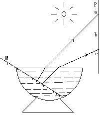 将平面镜M斜放入一个装满清水的碗中,调整平面镜的倾斜角度,让一束太阳光斜射入水中.经折射、反射、折射后射到PQ屏上,分为a、b、c三个光区,如图所示(图中只作出了表示区域分界线的两条折射光线).现将三瓶相同的红藻放在三个光区,并设其他光不能进入这三个光区,试问这三瓶红藻哪一个生长得最慢?请说明理由.