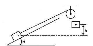 如图所示,A、B是两个质量相同的物体,用轻绳跨过定滑轮相连,先用手托住B,此时A、B的高度差为h,使B无初速释放,斜面倾角为θ,一切摩擦均不计,试求A、B运动到同一水平面上时速率是多大?