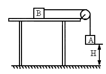 如图所示,物体A、B通过光滑的轻滑轮相连,B物体放在光滑的水平桌面上,B物体的质量是A物体质量的一半,先按住B使整个装置静止,放手瞬间,A离地面高度为H,当人离地面的高度h为多少时,它的动能和它的势能相等?