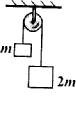 如图所示:两物体质量分别为m和2m,滑轮的质量和摩擦都不计,2m的物体从静止开始下降h后的速度是多大?(提示:选择ΔEA减=ΔEB增或ΔEP减=ΔEK增分析)