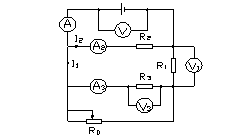 如图所示,将变阻器R0的滑动头P向右滑动时,分析各电表示数如何变化?