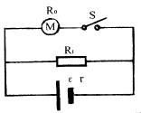 如图所示,电阻R1=8Ω,电动机M绕组的电阻RD=2Ω。当开关S断开时,电阻R1消耗的电功率为2.88W.当开关S闭合时,电阻R1消耗的电功率为2W.若电源电动势为6V,求