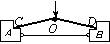 如图所示,A、B为两个小木块,把一根长约20cm的细铁丝两端分别固定在小木块上,CO和DO是两根长约12cm的木条,两端点O重叠在一起,并安装一个固定转动轴,组成一个“人”字形支架,张开的两端点分别顶在A、B两木块上,张角大于150°。用手指向下压O点处的转动轴,用不大的力就能把铁丝拉断。试说明这是为什么。