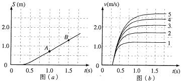 C.在相同的实验条件下,同学们首先测量了单只“小纸杯”在空中下落过程中不同时刻的下落距离,将数据填入下表中,图(a)是对应的位移一时间图线.然后将不同数量的“小纸杯”叠放在一起从空中下落,分别测出它们的速度一时间图线,如图(b)中图线l、2、3、4、5所示.