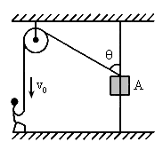 人用绳子通过定滑轮拉物体A,A穿在光滑的竖直杆上,当以速度匀速地拉绳使物体A到达图所示位置时,绳与竖直杆的夹角为θ,求A物体实际运动的速度是多大?