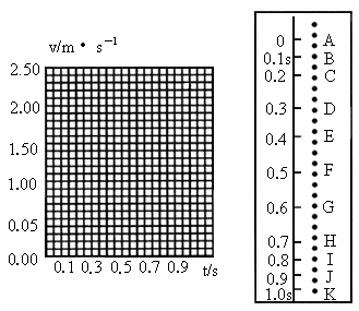 利用打点计时器研究一个约1.4m高的商店卷帘窗的运动.将纸带粘在卷帘底部,纸带通过打点计时器随帘在竖直面内向上运动.打印后的纸带如图所示.数据如表格所示.纸带中AB、BC、CD……每两点之间的时间间隔为0.10s,根据各间距的长度,可计算出卷帘窗在各间距内的平均速度,可以将近似地作为该间距中间时刻的瞬时速度v.