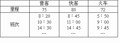 一位旅客可用三种方法从苏州去上海,第一种乘普通客运汽车到达;第二种可乘快客经沪宁高速公路到达;第三种可乘火车到达.下面是三种车的时刻表及里程表.已知普通客运汽车的平均时速为60km/h,快客平均时速为100km/h,两车中途均不停站.火车在中途需停靠昆山站5min时间,设火车进站和出站都做匀变速运动,加速度大小都是2400,途中匀速行驶,速率为120km/h,若现在时刻是上午8点15分,这位旅客想早点赶到上海,他应该选乘什么车?