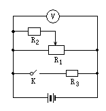如下图所示电路中,变阻器总电阻=12Ω,=12Ω,=2.5Ω.变阻器的滑动触头与中心点接触,当开关k接通时,电压表示数为3V,这时电源消耗的总功率为9w,求开关k断开时,变阻器消耗的功率.
