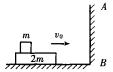 如图所示,在光滑的水平面上有一质量为2m的长木板,在木板的左端放有一质量为m的木块(大小可忽略,两者之间的动摩擦因数为).现让两者一起以速度v0向竖直墙壁AB运动,使木板与墙发生弹性正碰.已知碰后两者最终相对静止.试求: