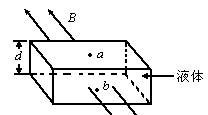图为一电磁流量计的示意图,其截面为正方形的非磁性管,每边边长为d,导电液体流动,在垂直液体流动方向上加一指向纸内的匀强磁场,磁感应强度为B.现测得液体a、b两点间的电势差为U,求管内导电液体的流量Q.