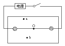 在实验中,按下电键,接通电路,若一个探针与基准点O接触,另一探针已分别在基准点O的两侧找到了实验所需要的两点a、b(如图)所示,则当此探针与a点接触时,电表的指针应________(左偏、指零、右偏);当此探针与b点接触时,电表的指针应________(左偏、指零、右偏).