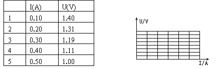 某同学在用电流表和电压表测定电池的电动势和内电阻时,测得如下表所示的实验数据,请根据数据在图所示坐标图中作出U-I图线,并根据图像求出电池电动势和内阻.结果:=_______V,r=_______Ω.