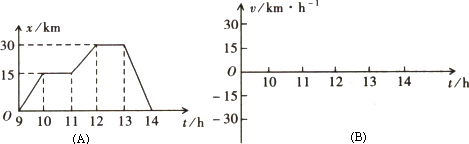 某同学星期日沿平直的公路从学校所在地骑自行车先后到甲、乙两位同学家去拜访他们,x-t图象如图(A)所示.试描述他的活动过程,在图(B)中画出他的v-t图象.