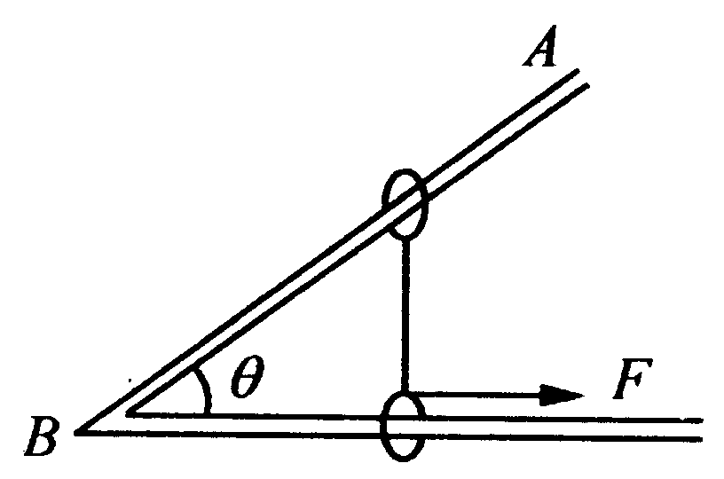 两光滑杆AB、BC构成一个“V”形框架,两杆夹角为,在杆上各套有质量可忽略的轻环,两轻环间用细绳相连接,整个装置放在水平面上,现用水平力沿BC杆拉环,当两环平衡时,细绳上的张力多大.(如图所示)