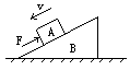 如图所示,质量为M的直角斜劈放在水平地面上,在劈的斜面上放一个质量为m的物体A,用一个沿斜面向上的力F作用于A上,使它沿斜面匀速下滑,在A的下滑的过程中,地面对劈的支持力Q和摩擦力f是