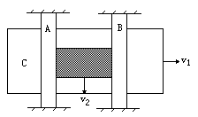 如图所示,质量为m的工件放在水平放置的钢板C上,二者间的动摩擦因数为μ,由于光滑导槽A和B的控制,工件只能沿水平导槽运动,现使钢板以速度v1向右运动,同时用力F拉动物体(F的方向沿导槽的方向)使物体以速度v2沿导槽运动,则F的大小为