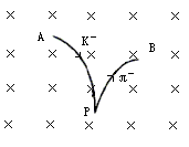 K-介子衰变的方程为K-→π-+π0,其中K-介子和π-分子带负的基元电荷,π0介子不带电.一个K-介子沿垂直于磁场的方向射入匀强磁场中,其轨迹为圆弧AP,衰变后产生的π-介子的轨道为圆弧PB,两轨迹在P点相切,它们的半径与之比为2∶1.π0介子的轨迹未画出.由此可知π-的动量大小与π0的动量大小之比为