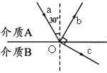 如图,a、b、c分别为入射波、反射波、折射波,已知入射波波速v=10m/s,入射角为30°,反射波线与折射波线相垂直,求折射波的速度.