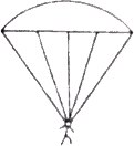 跳伞运动员打开伞后经过一段时间,将在空中保持匀速降落,已知运动员和他身上装备的总重量为G1,圆顶形降落伞的重量为G2,有8条相同的拉线一端与飞行员相连(拉线重量不计),另一端均匀分布在伞面边缘上(下图中没有把拉线都画出来),每根拉线和竖直方向都成30°角.那么每根拉线上的张力大小为