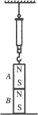 如图所示,两块相同的条形磁铁A与B质量均为m,将它们竖直放在水平面上,用弹簧秤通过一根细线竖直向上拉磁铁A,若弹簧秤的读数为mg,则B对A的弹力F1以及桌面对B的弹力F1分别为