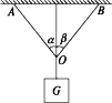 如图所示,用两根轻绳OA、OB悬挂重物G,使其处于静止状态,保持绳OA与竖直方向的夹角不变,在绳OB与竖直方向的夹角从小于(90°-α)逐渐增大到90°的过程中,两条绳OA、OB的拉力F1、F2的变化情况是