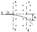 一束电子以不同速度v垂直射入一有界的匀强磁场中,如图所示。两界面cd∥ab,且v⊥ab,电子穿过磁场的侧移量为h,磁场的磁感强度B可调。那么,若其它条件不变
