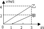 甲、乙两质点在一直线上做匀加速直线运动v——t图象如图所示,在3 s末两质点在途中相遇,两质点出发点间的距离是: