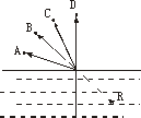 如图所示,光线R从水中进入空气,那么折射光线可能通过