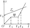 甲乙两物体在同一直线上运动的s-t图象如图所示,以甲的出发点为原点,出发时刻为计时起点,则从图象可以看出( ).