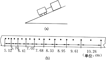 一打点计时器固定在斜面上某处,一小车拖着穿过打点计时器的纸带从斜面上滑下,如图(a)所示.图(b)是打出的纸带的一段.