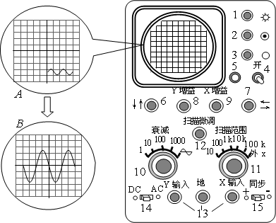 某示波器工作时,屏上显示出如图所示的波形,且亮度较弱.要将波形由A图位置调节到B图的位置和波形,示波器面板上的旋钮被调节的是________.