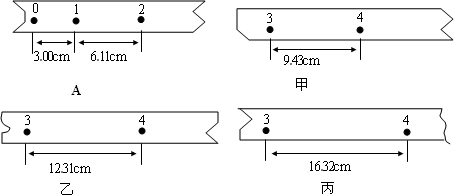 ①在甲、乙、丙三段纸带中,属于纸带A的是________