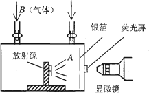 1919年卢瑟福通过如图所示的实验装置,第一次完成了原子核的人工转变,并由此发现________.图中A为放射源发出的________粒子,B为________气.完成该实验的下列核反应方程________