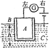 如图所示,是测定液面高低的传感器示意图,A为固定的导体芯,B为导体芯外面的一层绝缘物体,C为导电液体,把传感器接到图示电路中.已知灵敏电流计指针偏转方向与电流方向相同.如果发现指针正向左偏转,则导电液体的深度h的变化是________,说明电容器的电容________.