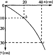 某同学在做平抛运动实验时得到了如图中的物体运动轨迹,a、b、c三点的位置在运动轨迹上已标出,则: