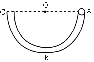 如上图,在竖直放置的光滑半绝缘细管的圆心O处放一点电荷,将质量m,带电量为q的小球从圆弧管的水平直径端点A由静止释放,小球沿细管滑到最低点B时,对管壁恰好无压力,则放于圆心处的电荷在AB弧中点处的电场强度的大小为