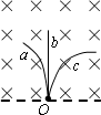 三种不同粒子a、b、c从O点沿同一方向进入垂直纸面向里的匀强磁场中,它们的运动轨迹分别如图所示.则