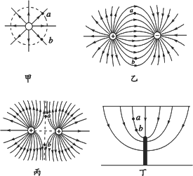 C.丙图中两等量同种电荷连线的中垂线上与连线等距的a、b两点