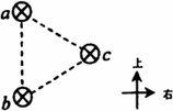在等边三角形的三个顶点a、b、c处,各有一条长直导线垂直穿过纸面,导线中通有大小相等的恒定电流,方向如图.过c点的导线所受安培力的方向