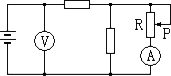 在如图所示电路中,当滑动变阻器R的滑片P向下移动时,电压表V和电流表A的示数变化是: