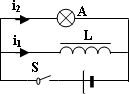 如图所示电路中,S是闭合的此时流过线圈L的电流为i1,流过灯泡A的电流为i2,且i1>i2.在t1时刻将S断开,那么流过灯泡的电流随时间变化的图像是下图中的哪一个