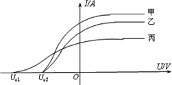 在光电效应实验中,飞飞同学用同一光管电管在不同实验条件下得到了三条光电流与电压之间的关系曲线(甲光、乙光、丙光),如图所示,则可判断出