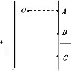 如图所示,质量相等的两个带电液滴1和2从水平方向的匀强电场中0点自由释放后,分别抵达B、C两点,若AB=BC,则它们带电荷量之比q1∶q2等于