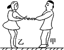 甲、乙两名溜冰运动员,M甲=80 kg,M乙=40 kg,面对面拉着弹簧秤做圆周运动的溜冰表演,如图所示,两人相距0.9 m,弹簧秤的示数为9.2 N,下列判断中正确的是